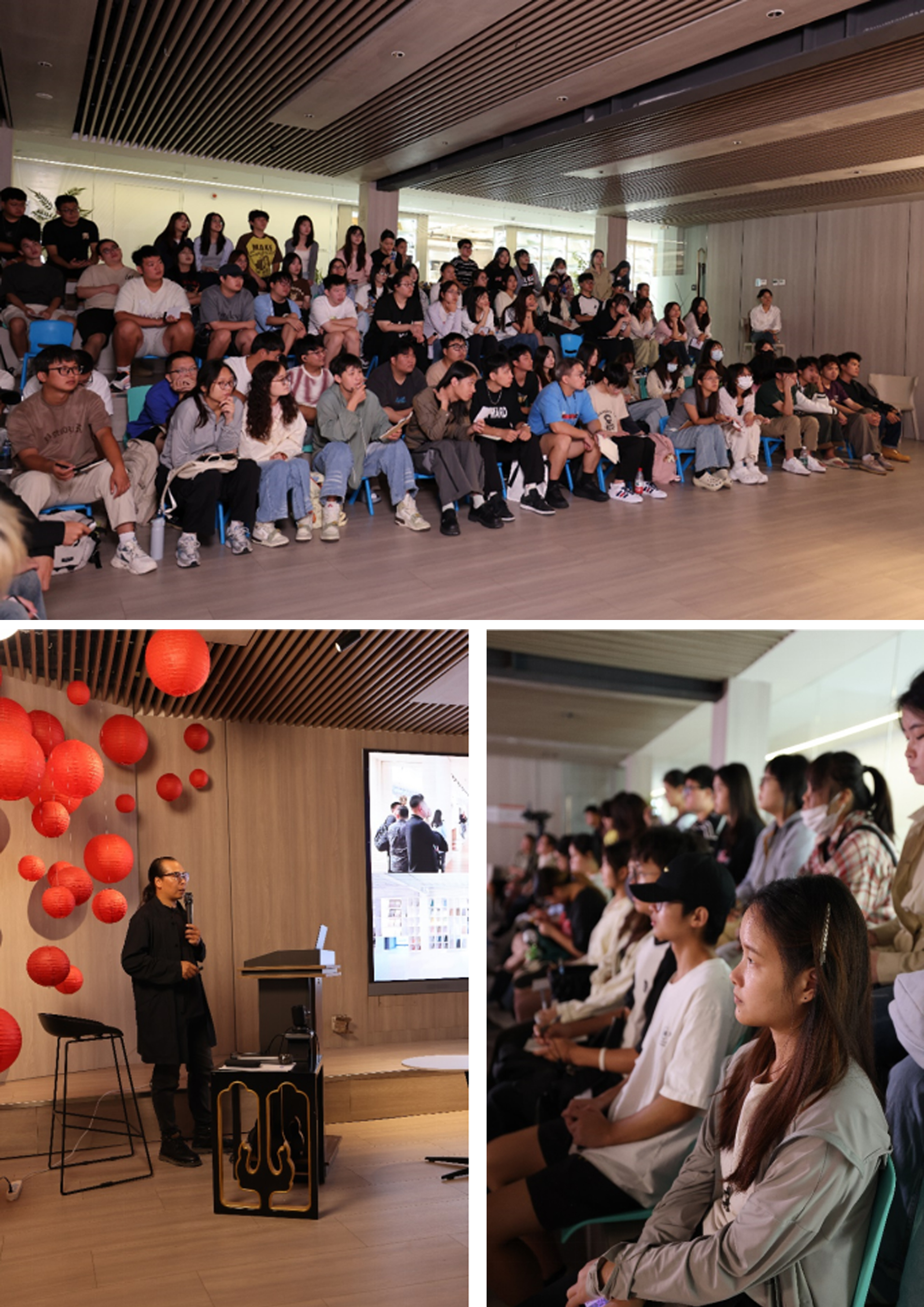 在课堂的最后一刻钟,同学们积极的对张云老师提出心中的问题,例如:张云老师平时灵感匮乏的时候应该怎样去寻找灵感;张云老师在成立团队的时候是先成立了团队,还是在路上寻找志同道合的伙伴;近年来大环境对于环艺专业的同学不是特别的友好,作为环艺专业的