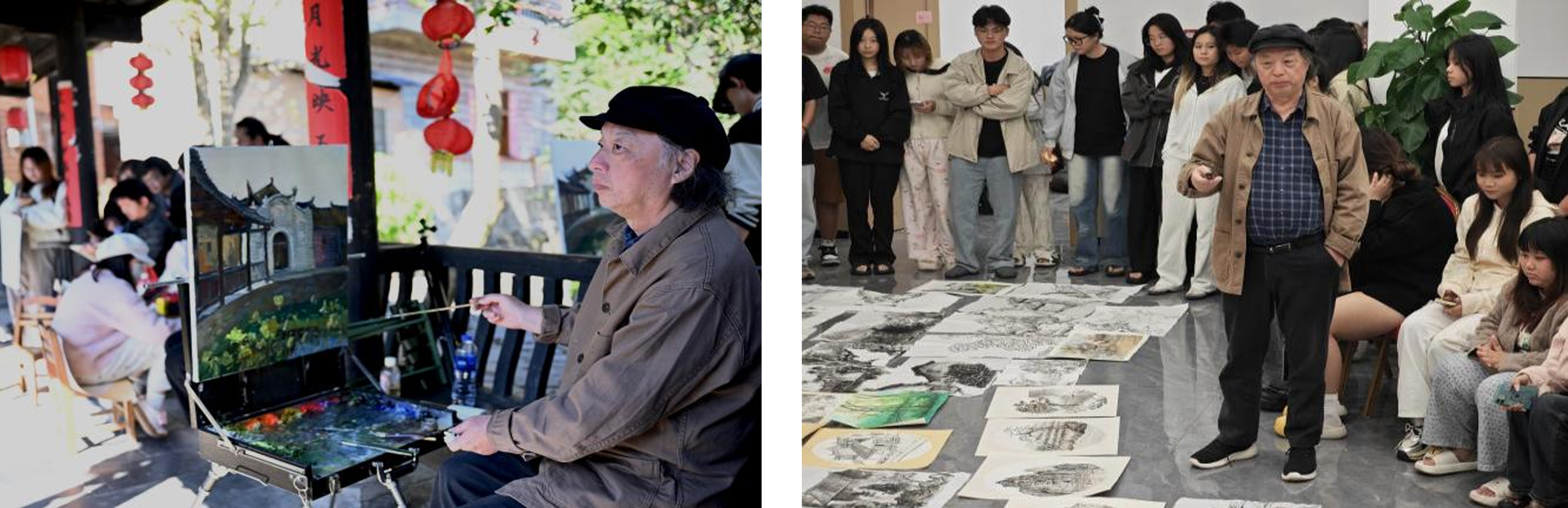 作为我院三年级学生进入专业领域后的一门重要课程,专业写生不仅要求学生熟练掌握本专业材料与媒介的使用,更强调通过实践加深对艺术创作特性的理解。为此,学院特别安排了知名教授及专业教师为同学们进行现场示范与讲解,帮助他们更直观地掌握创作技巧。