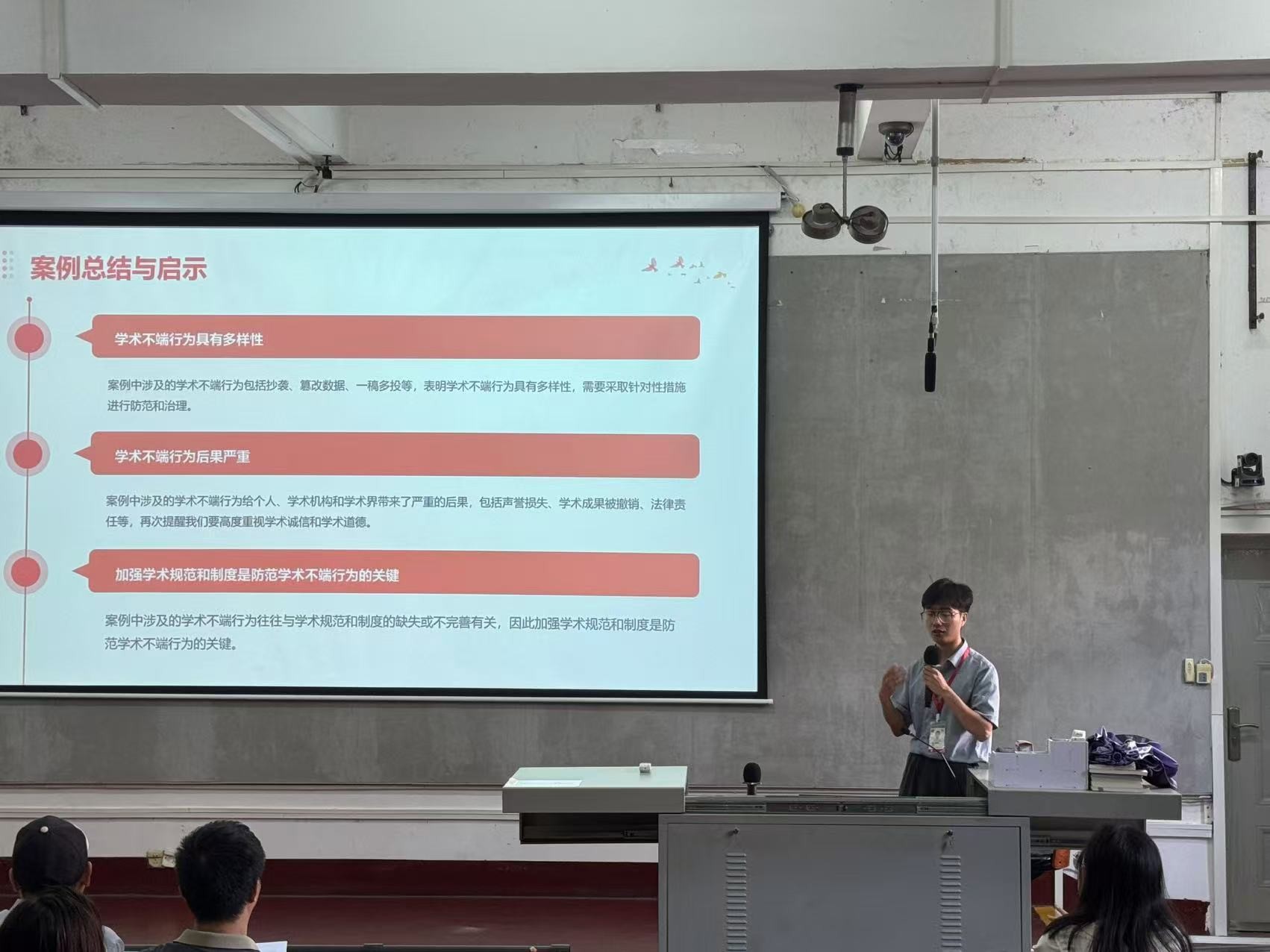 为确保科研诚信理念深入人心,学院还组织各班级召开了科研诚信主题班会。辅导员和班主任通过生动的案例和深入浅出的讲解,向学生们传达了科研诚信的重要性和必要性。学生们纷纷表示,将严格遵守科研诚信原则,为学院的学术声誉和个人的职业发展坚守底线。