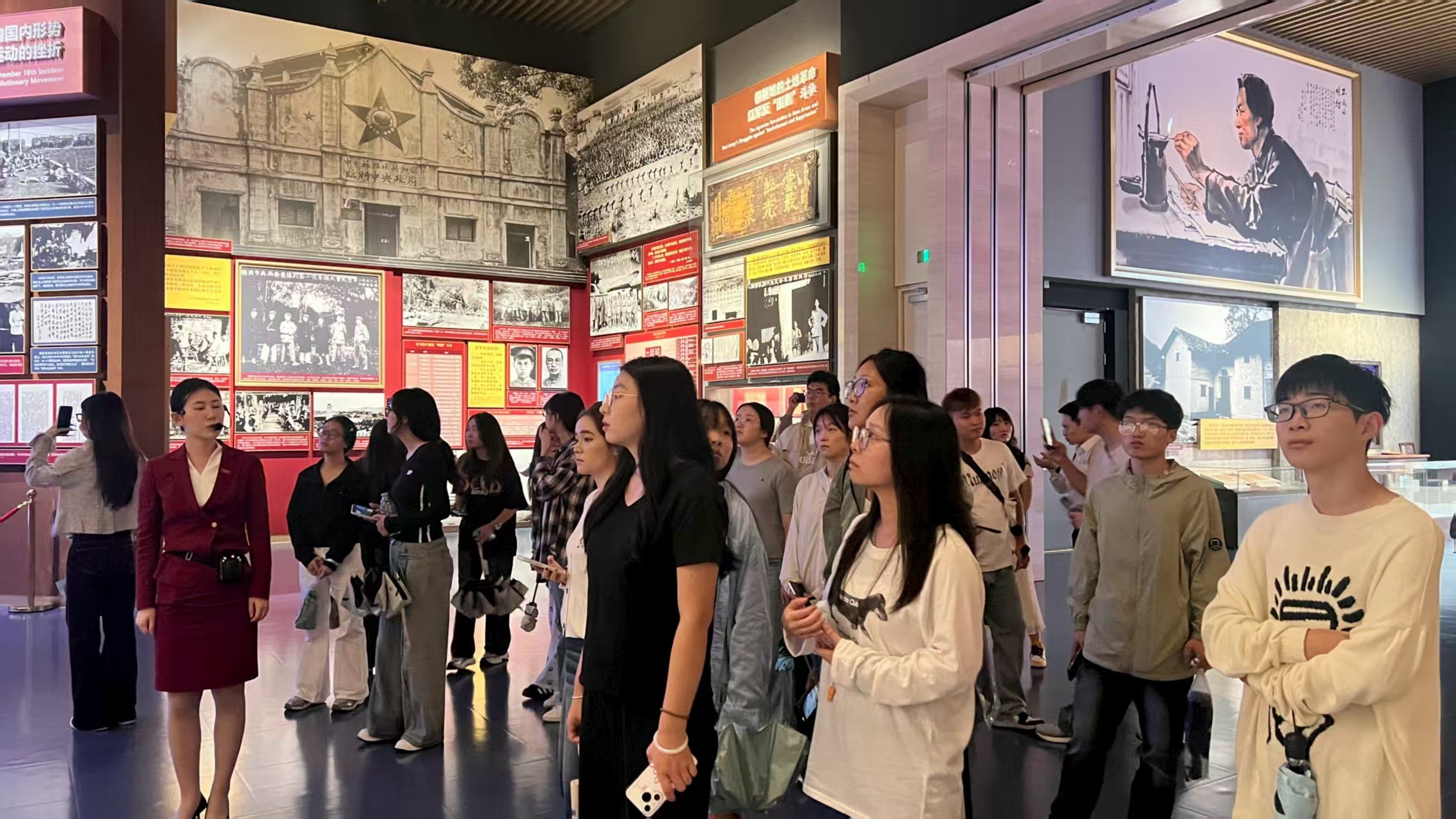 8月27日上午走进中国共产党历史展览馆,“不忘初心、牢记使命”的主题映入眼帘。一件件珍贵的文物、一幅幅生动的图片、一段段感人的故事,让学生们深刻感受到中国共产党百年奋斗的艰辛与辉煌。观结束后,很多学生表示,此次红色研学让自己的理想信念更加坚定。书法艺术不能脱离时代,党的百年奋斗史是最生动的教材,未来我们要将红色精神融入书法创作,用笔墨书写新时代的故事。