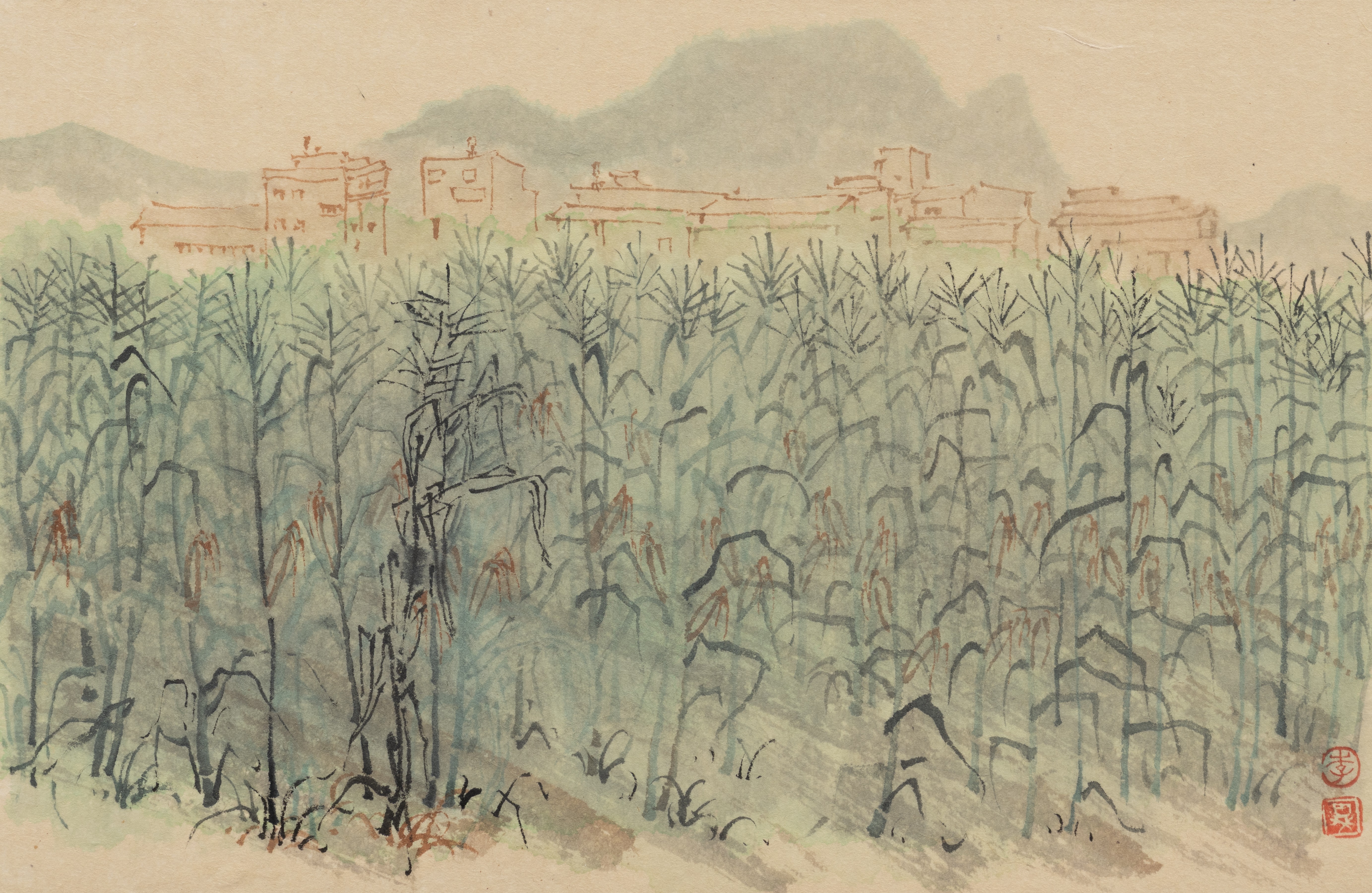 李异老师作品《玉米地》,20cm×29cm