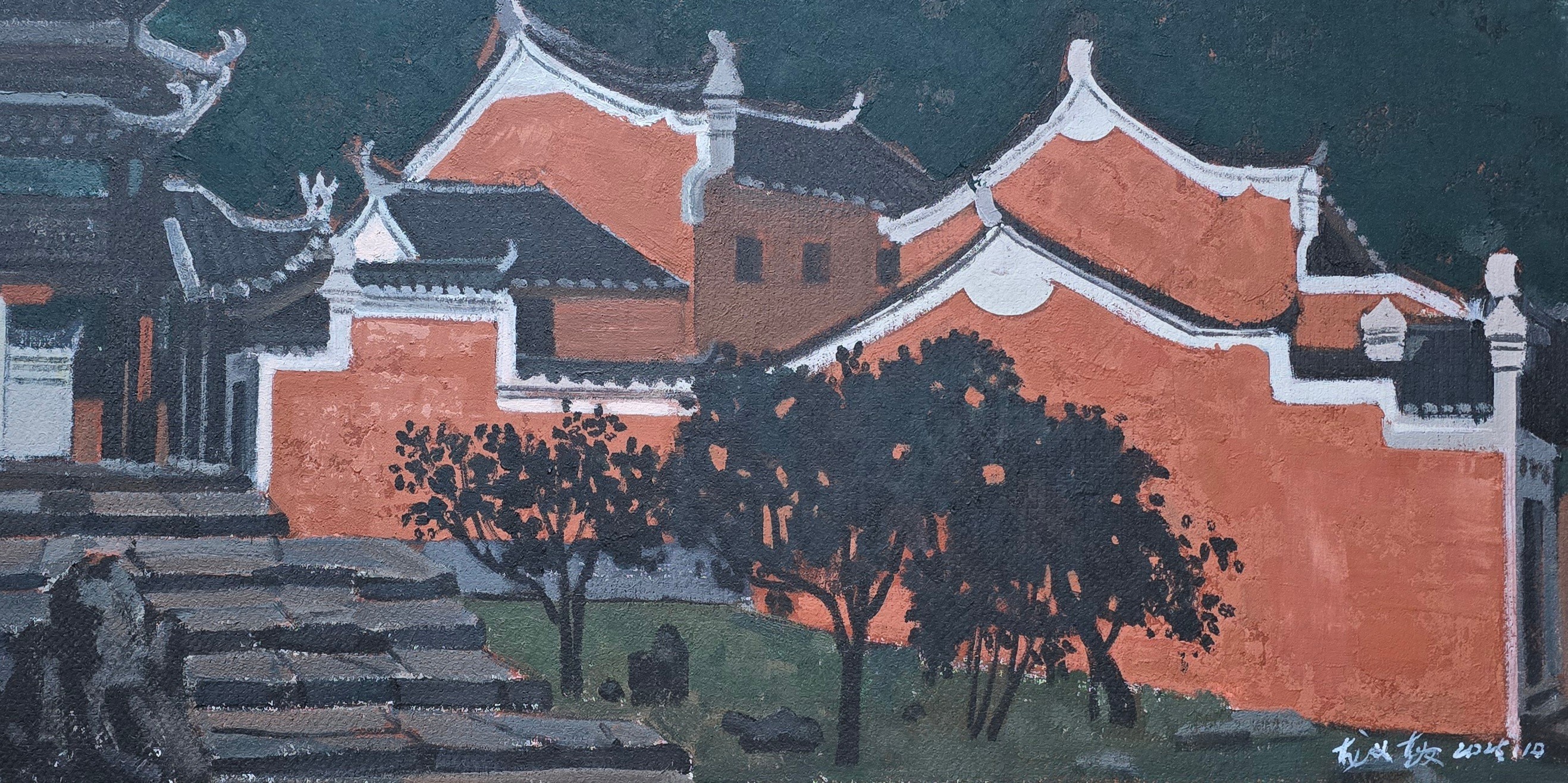 学生作品:美术学2409、10班,郭俊瑶月也·红墙》,30cmX40cm