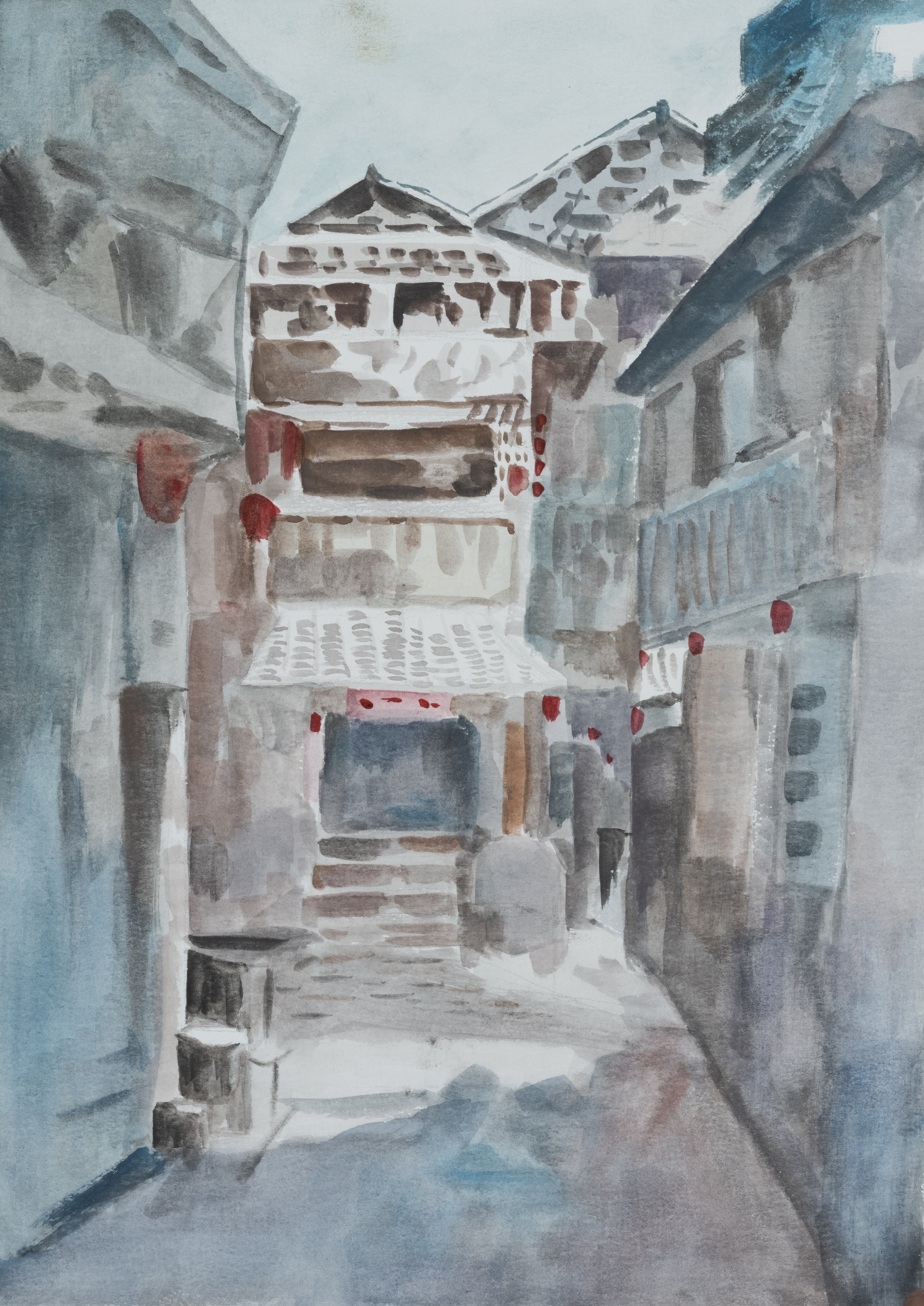 学生作品:美术学2305班,石涵玉小巷》,40cmX55cm