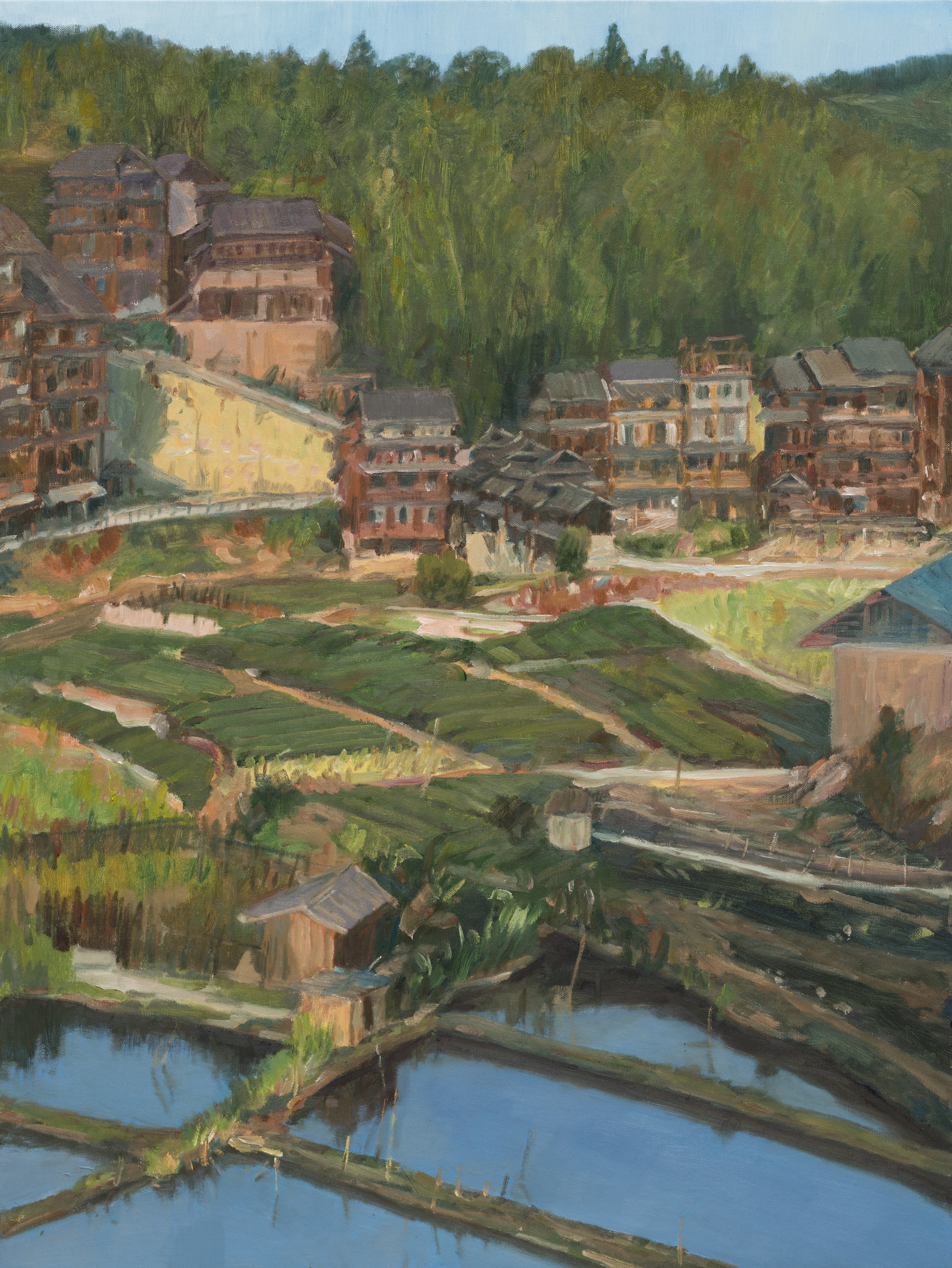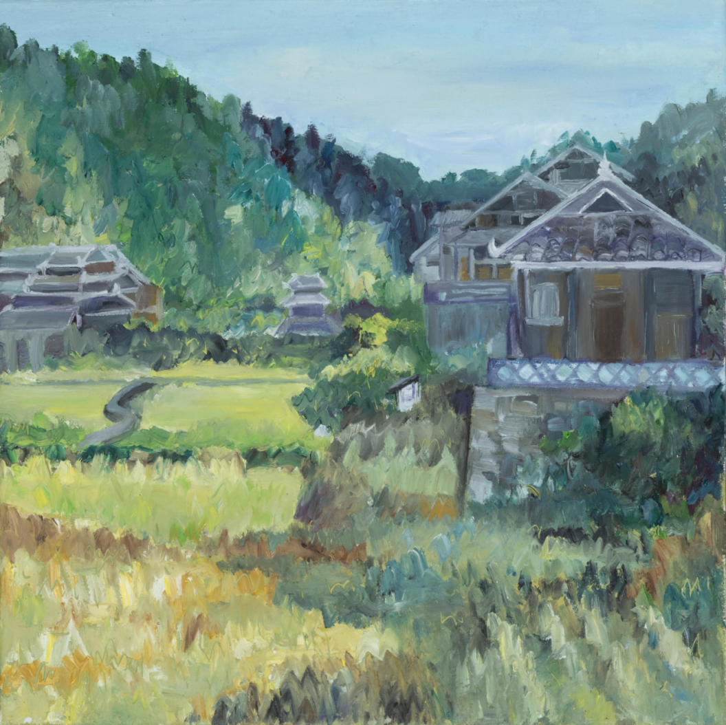 曲湘建教授作品《侗寨阳光》,80cmx60cm