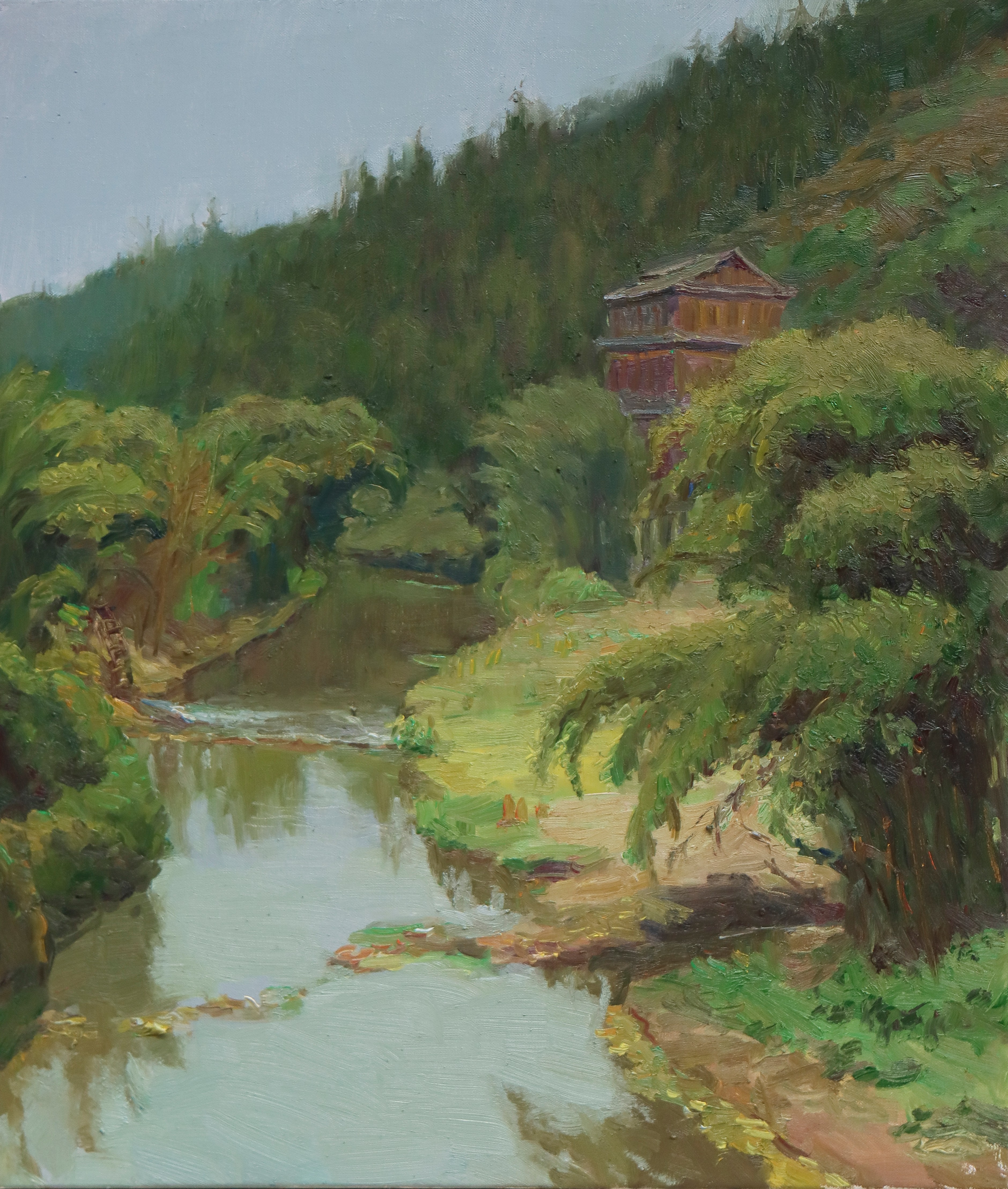 曲湘建教授作品《溪边人家》,80cmx60cm