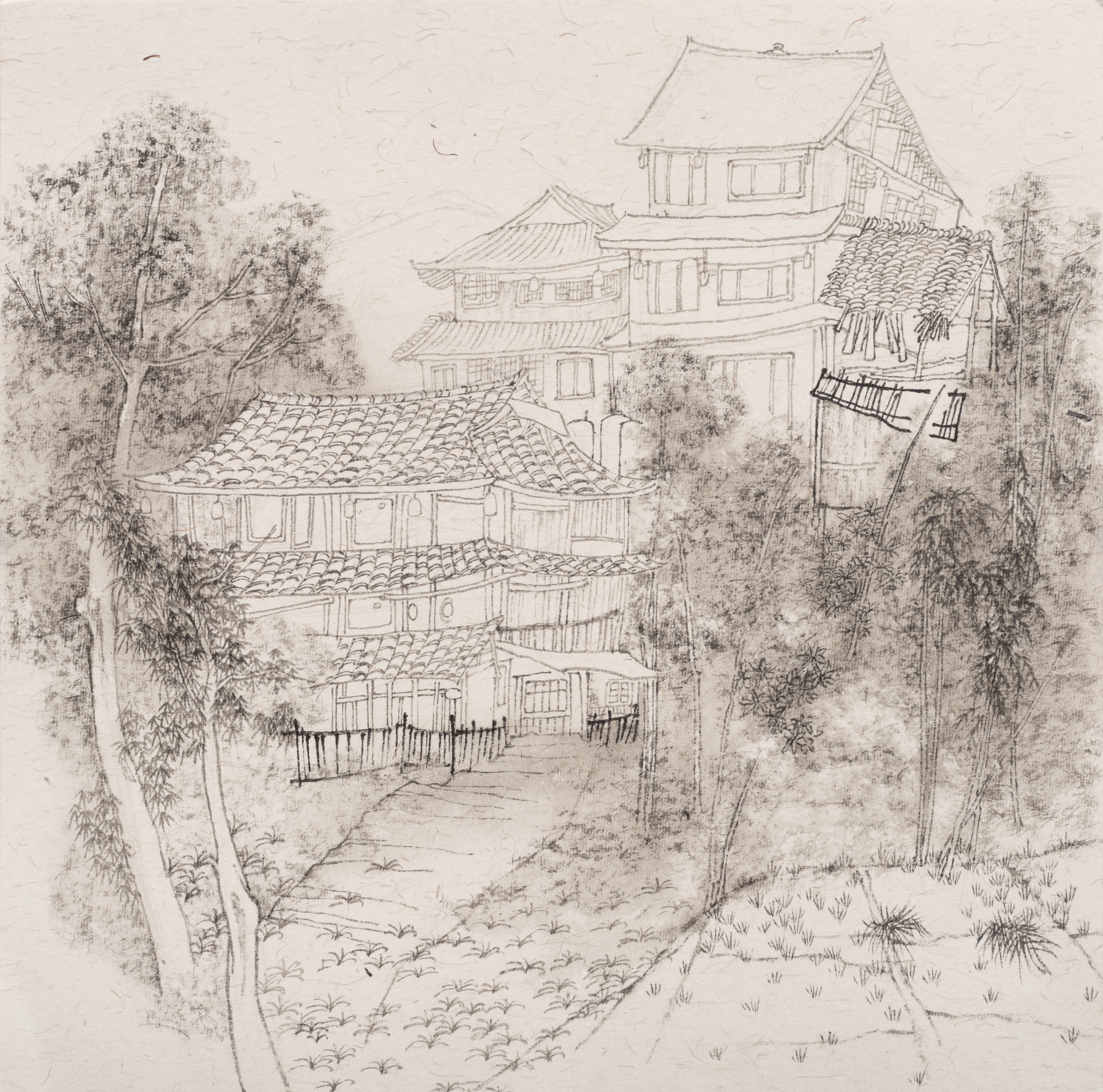 学生作品:美术学2504班,刘宣谷修女庭院》,43cmX38cm