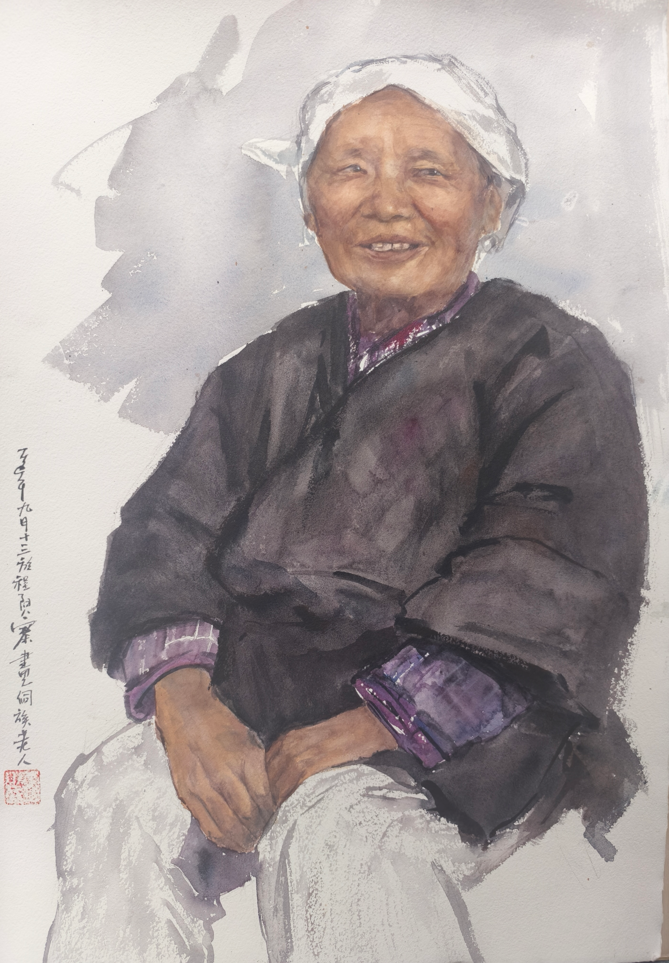 学生作品:绘画2405班,李飒侗族老人》,21cmX35cm