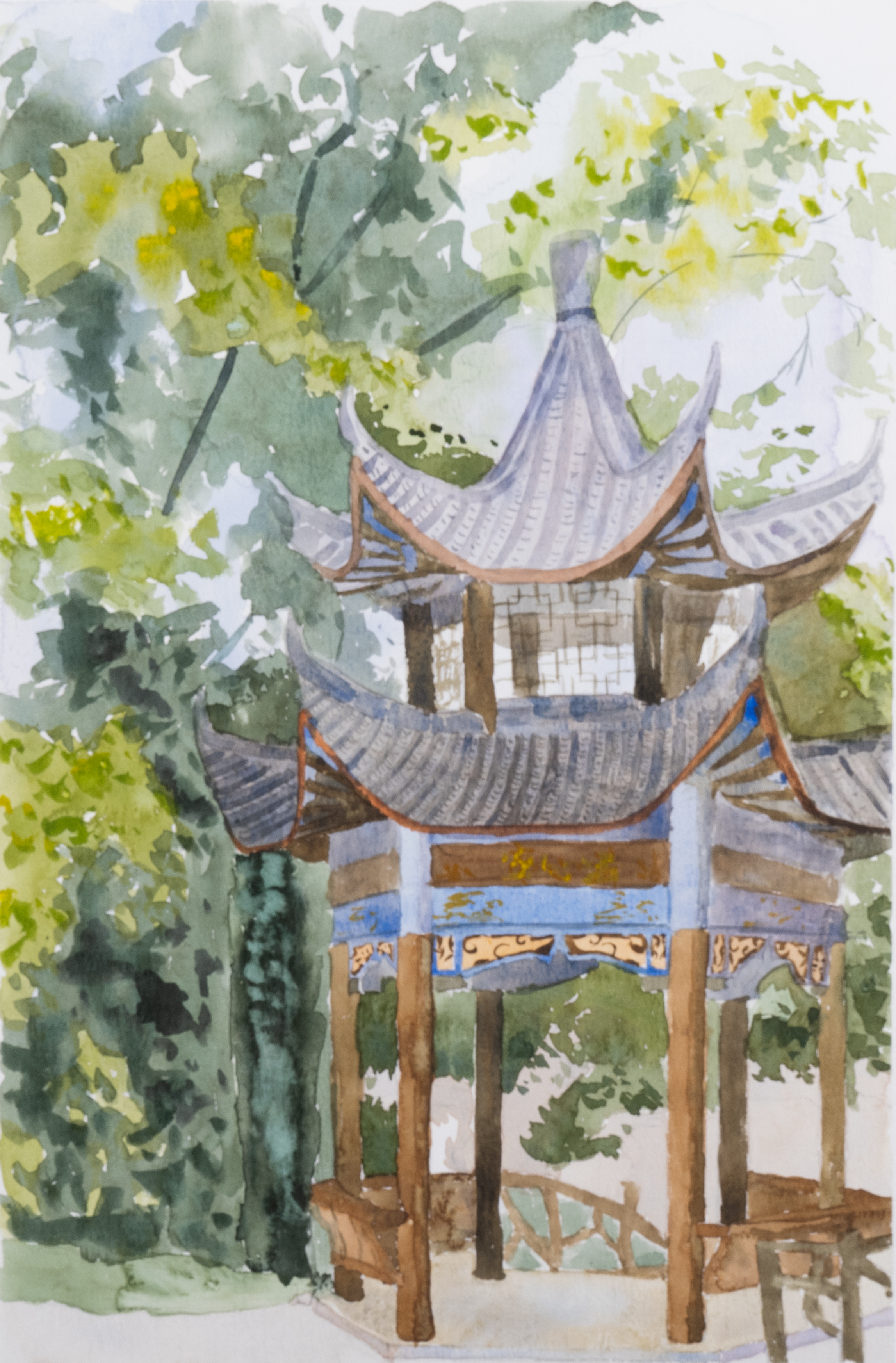 学生作品:绘画2305班,柳可欣清心亭》,54cmX38cm