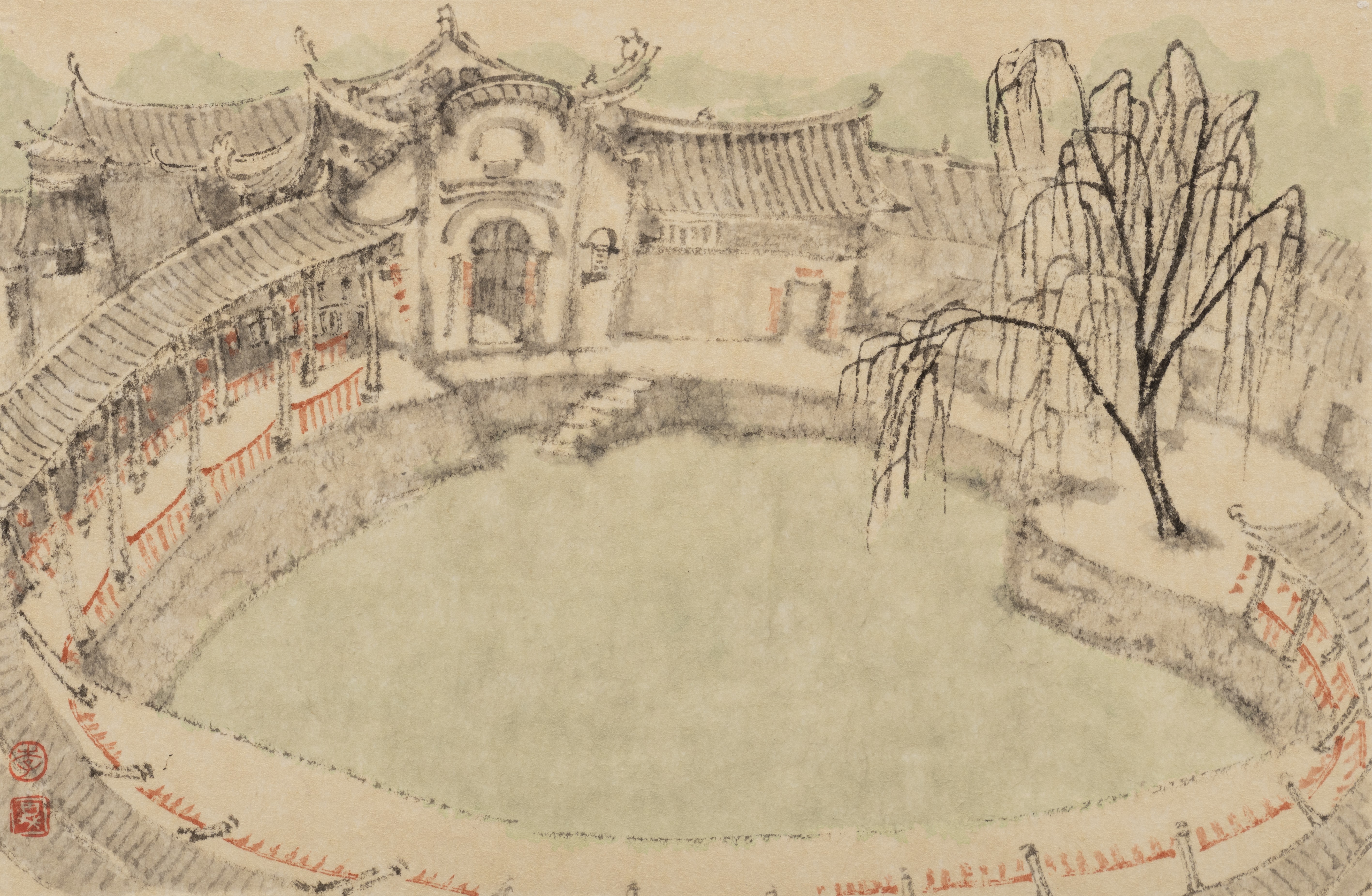 林昌华老师作品《再见高友鼓楼绿池》,73cmX60cm