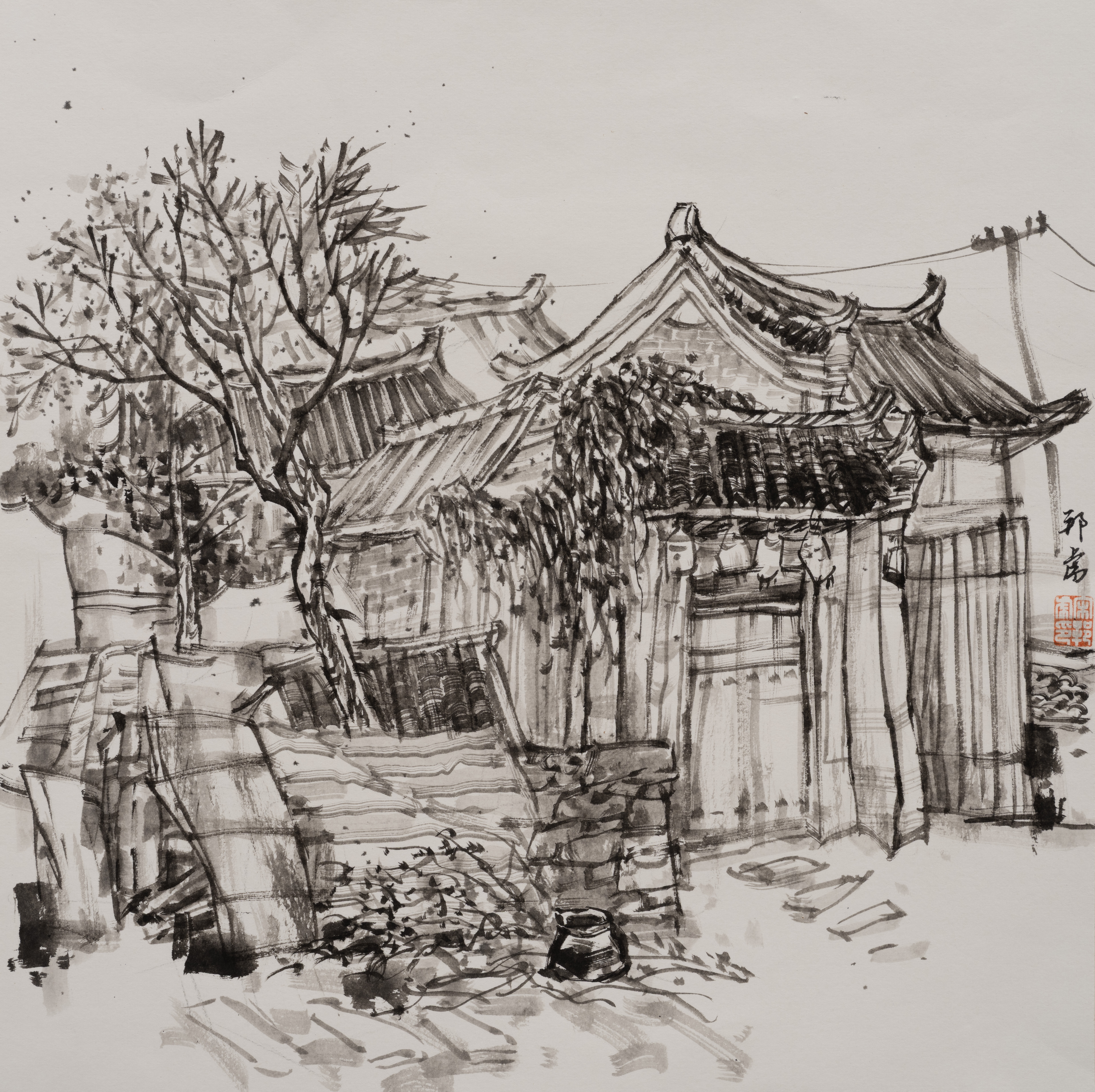 雒冲老师作品《村舍一隅》,30cm×50cm