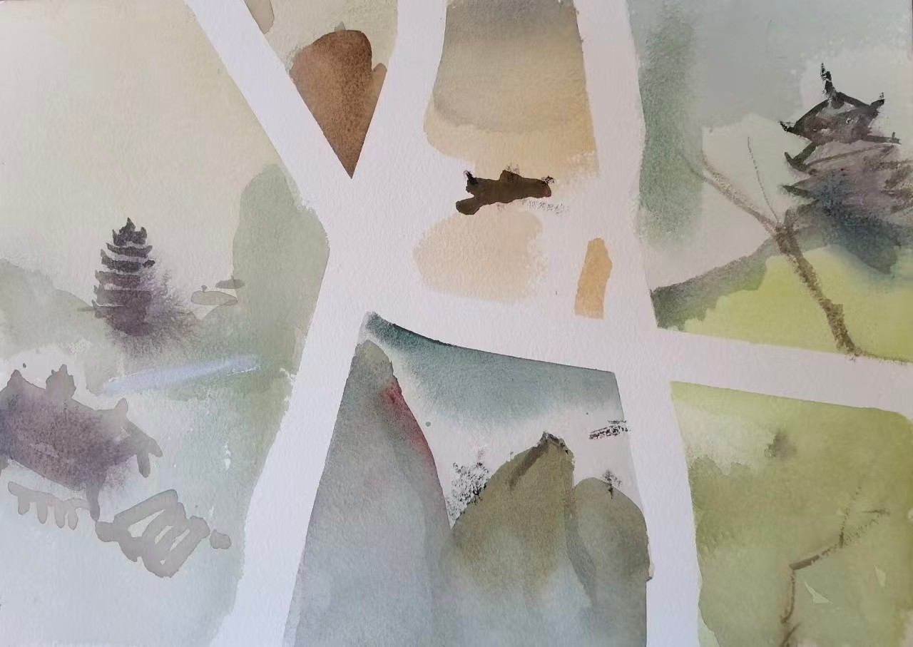 学生作品:美术学2304班,甘吴冰画廊映钟山》,45cmX65cm