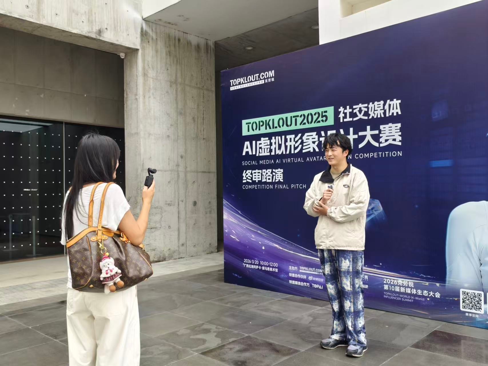 2026年3月20日,北海艺术设计学院副校长陶立阳、美术学院执行院长兼校长助理龚为、副院长殷声,以及摄影教研室部分教师、23/24/25级摄影专业学生代表一行人等受邀参加2026克劳锐第10届新媒体生态大会之社交媒体AI虚拟形象设计大赛终审路演活动。