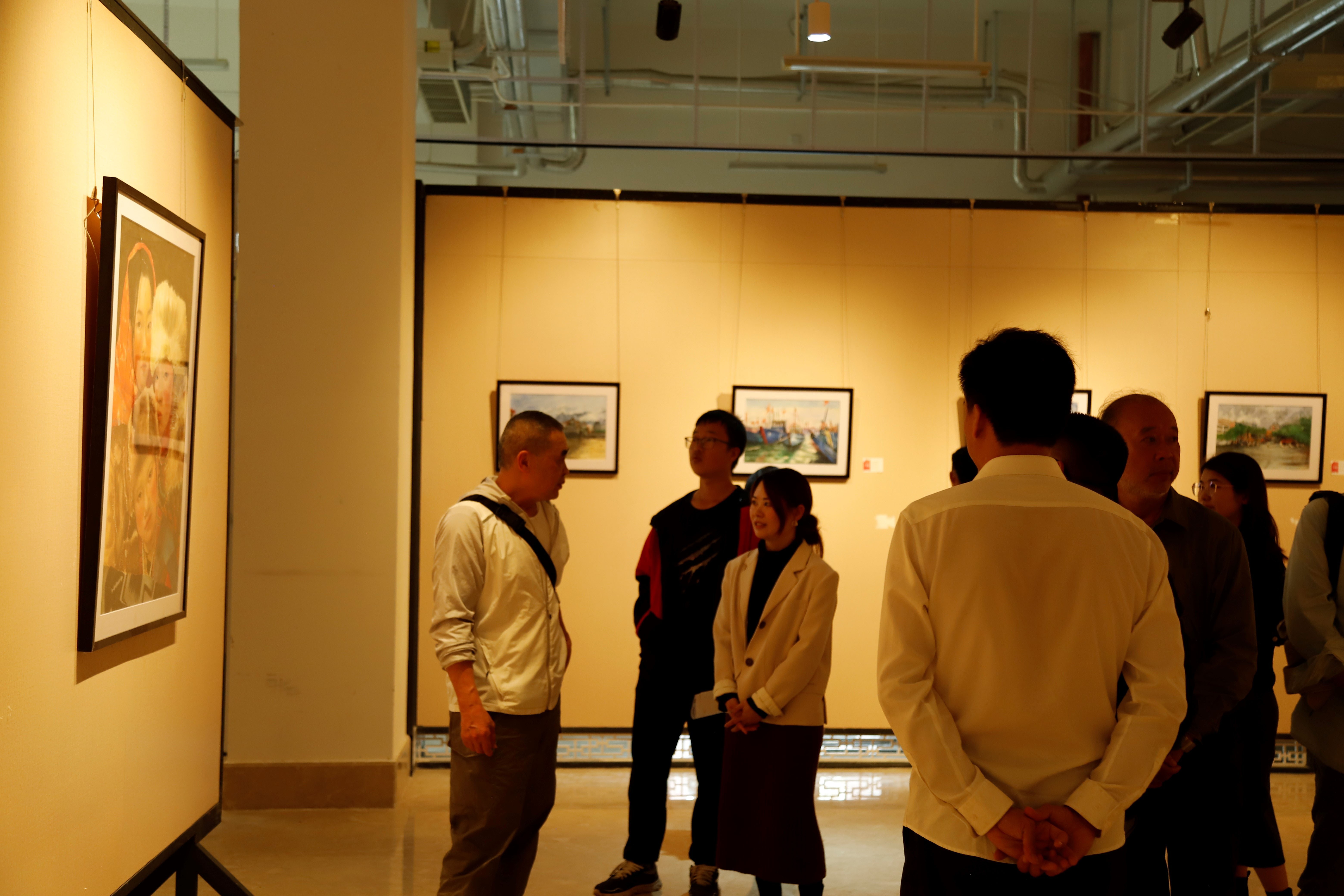 观展结束后,在艺术楼313进行水彩教学研讨会,会议由美术学院副院长龚为主持,北海市美术家协会主席肖畅恒,北海市画院院长蔡群徽,美术学院特聘教授刘广斌,教授张玉祥教授以及二级学院各领导和老师参加,会议就水彩课程以及水彩教学的实际问题进行深入探讨。(张湘中 摄)
