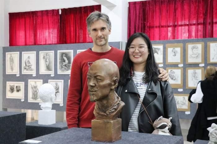 2018年12月17日下午五点,由北海艺术设计学院美术学院主办的“雕塑系专业2018级学生优秀作品展”在伦理楼 207展厅举办。 此次展出由美术学院王习银老师主持,出席的嘉宾有副校长邱杰、教务处处长孙竹青、美术学院副院长龚为、美术学院副院长唐海、雕塑系系主任金凯婧老师,以及美术学院的肖玺老师、张湘中老师还有出席本次展览的指导教师,俄罗斯教师尼基塔老师、波波夫老师、奥利嘉老师和张泰莹老师。