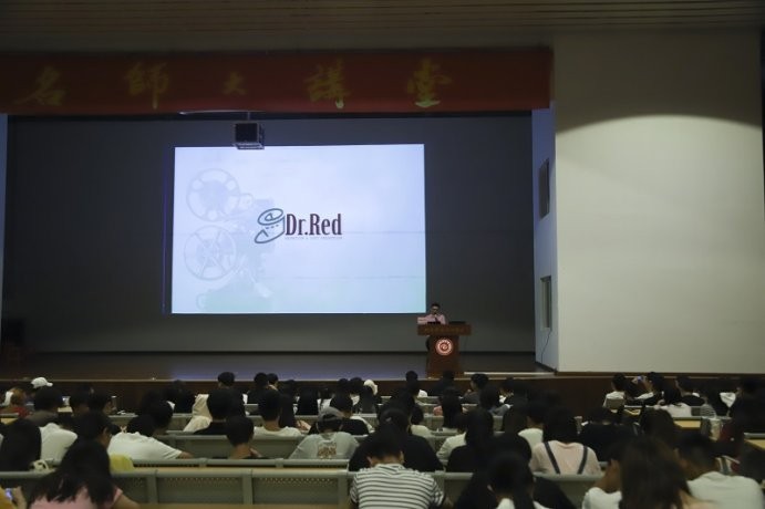 接着,由黄光宗总监给我们展示Dr.Red公司的优秀作品《小姜丝》、《油鬼》,并介绍公司的合作伙伴、领导阶层等,让同学们更加深入了解Dr.Red公司。随后,黄光宗总监向大家讲述自己在校求学时,从一个“门外汉”到动画导演的转变,使大家产生浓厚的听讲兴趣。他表示同学们既然选择了动画专业,就要风雨无阻的学习下去,有一份耕耘才会有一份收获。