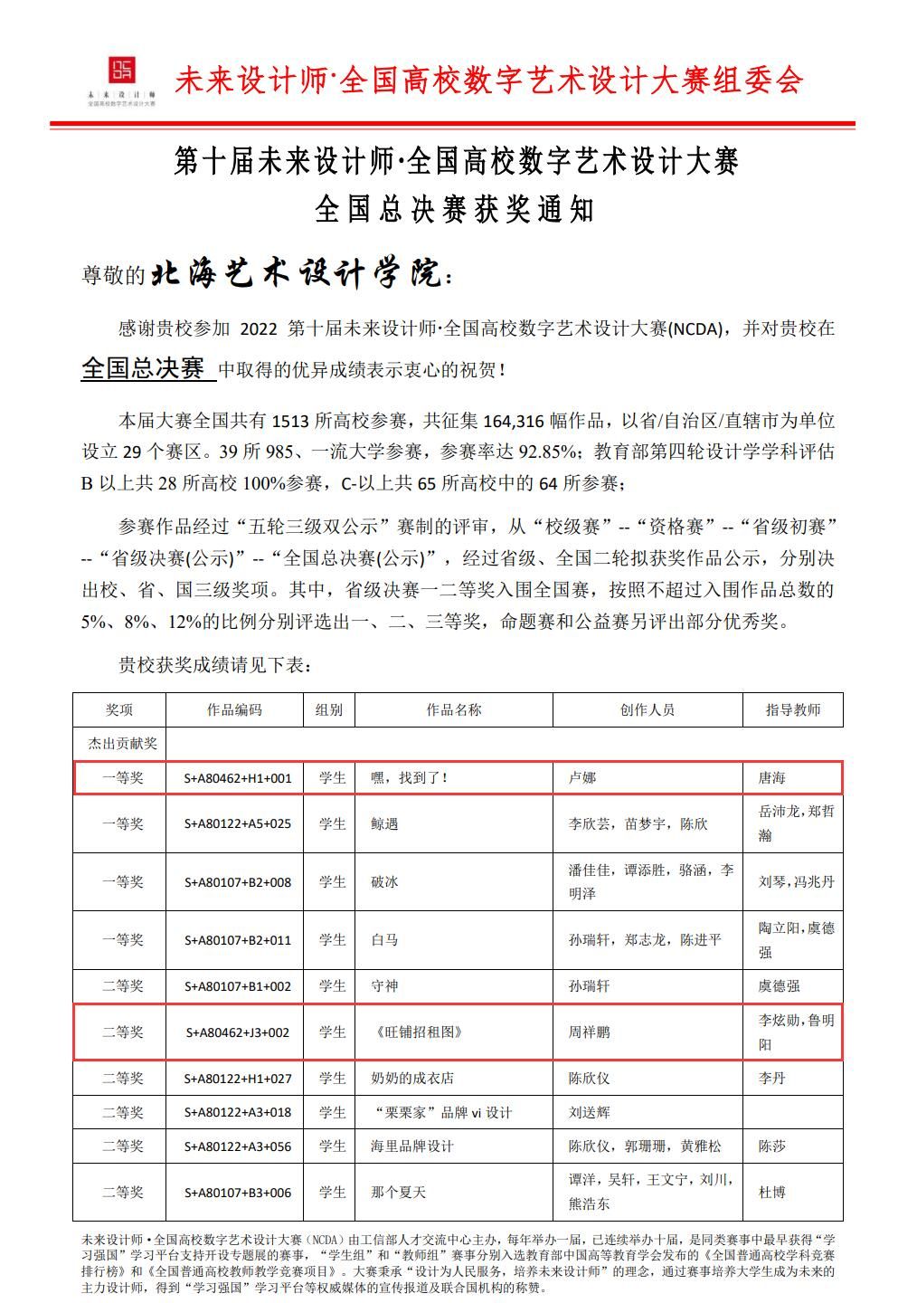 美术学院学生在“NCDA 2022第十届未来设计师•全国高校数字艺术设计大赛”中斩获佳绩