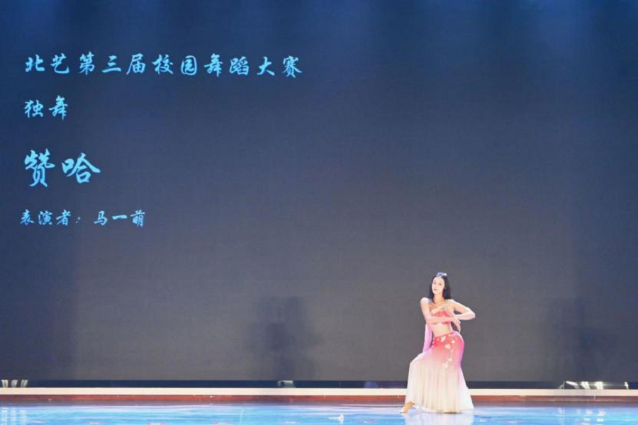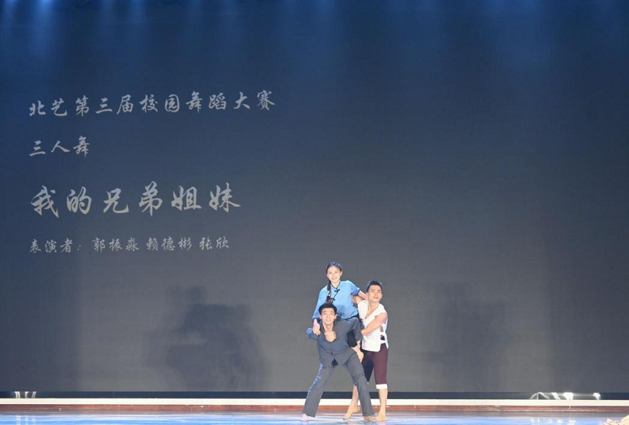 下午场是专业舞蹈“独双三”组的比赛,同学们用优美的肢体语言展现活力风采,青春之花在北艺校园绽放,表达了“一心跟党走,齐舞向未来”的情感。