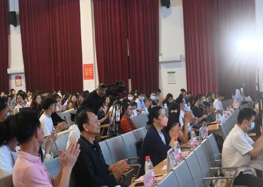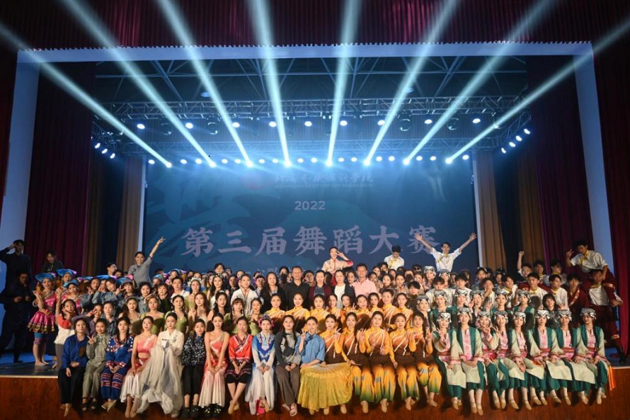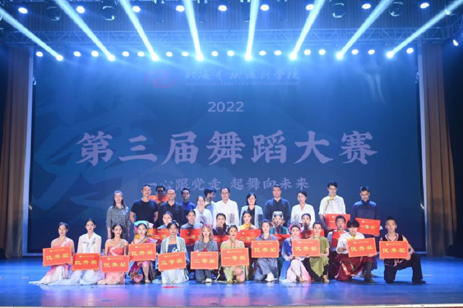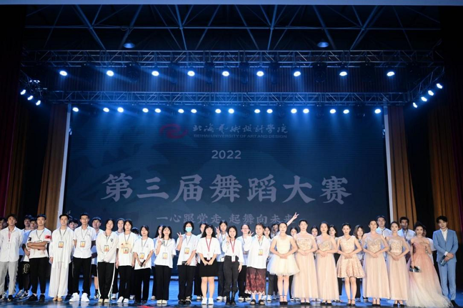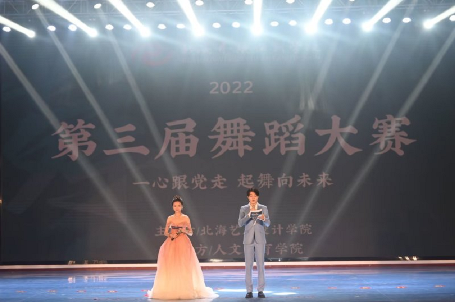 为深入学习党的二十大精神,加强舞蹈表演专业实践,推出一批宏扬中华文化、继承革命传统、反映新时代、新风貌的优秀舞蹈作品,丰富大学生的校园文化生活,2022年11月20日,北海艺术设计学院在西校区大礼堂举办“一心跟党走,齐舞向未来”第三届校园舞蹈大赛决赛。