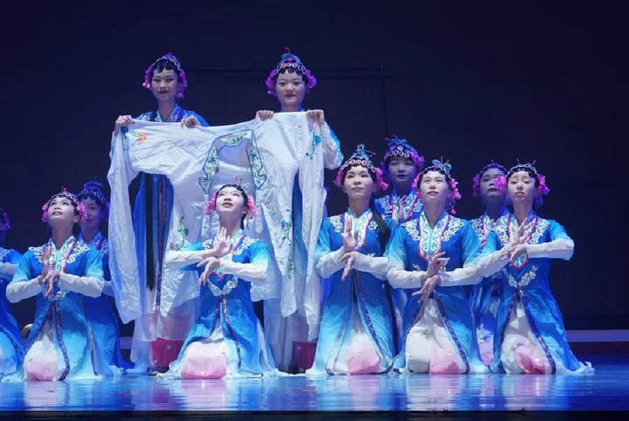 专业组的11支比赛队伍随后陆续登上舞台。《忆·青衣》回眸移步间,柔美端庄,婀娜淡雅;《红棉在守望》彰显客家女人的坚忍恪守、无私奉献;《八女投江》讴歌爱国情怀的巾帼英雄;《永不消失的花》展现中华民族不屈不挠,英勇善战的气概;《绣球女》则尽显闺阁女对甜蜜爱情和美满生活憧憬。