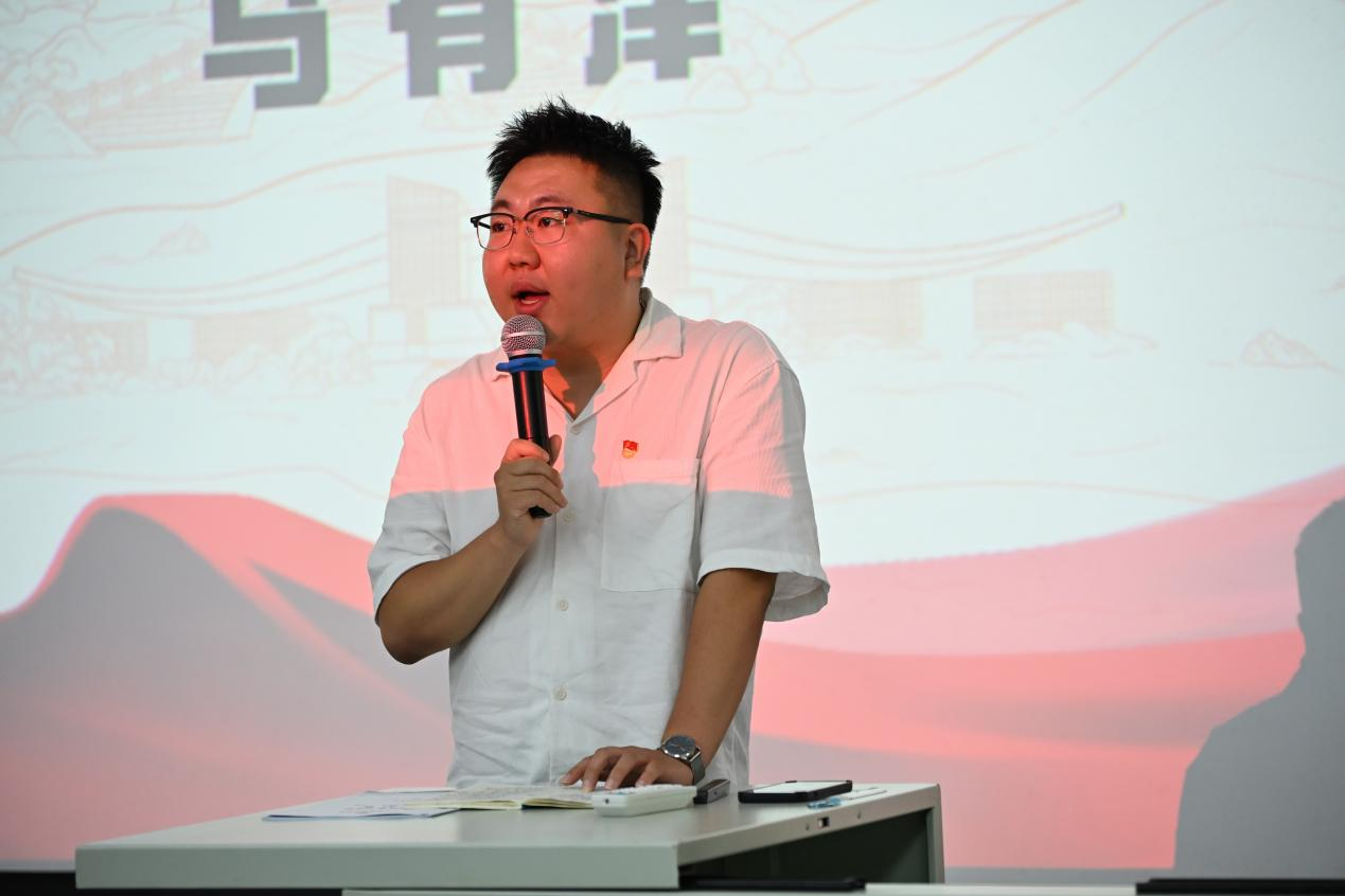 会议伊始,文学院党支部书记岳莹为大会致辞。岳书记首先对分团委成员在过去一年中的辛勤付出给予充分肯定。无论是迎新志愿活动中烈日下的执着坚守,还是团支部深入社区促进文化融合的不懈努力,抑或是积极参与学院各类展览与会议的忙碌身影,成员们的辛勤付出始终清晰可见。岳莹书记指出,要切实做好“老带新”工作,将宝贵的工作经验传授给新加入的干事,以助力他们更快、更好地融入分团委的工作环境。同时,希望成员们珍视分团委这一平台,把握宝贵机会,持续提升个人能力,展现文学院学子的青春奋斗