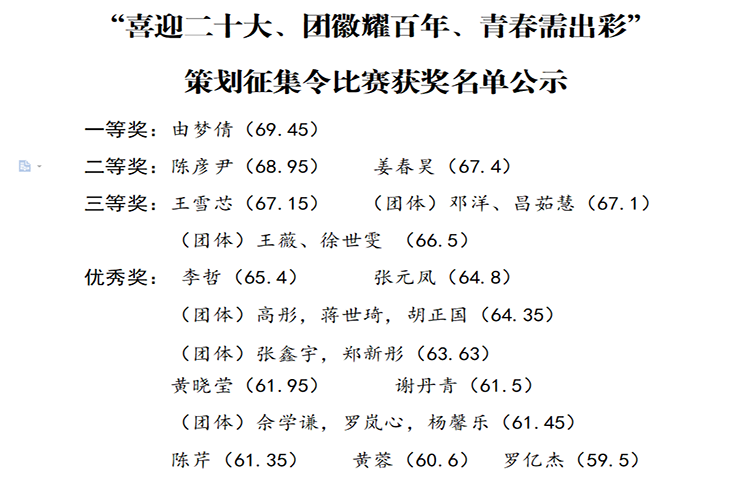 本次比赛以策划征集令的形式开展,共收集作品38份,其中有效作品36份。评委老师主要从排版格式严谨性、内容形式创新性、实施过程详细性、主题鲜明性等四个方面对作品进行评比。经过激烈角逐,最终有16个团体和个人获奖。(分团委/