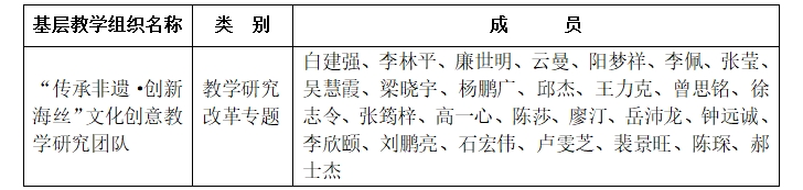“传承非遗·创新海丝”文化创意教学研究团队》入选2024年自治区级普通本科高校基层教学组织