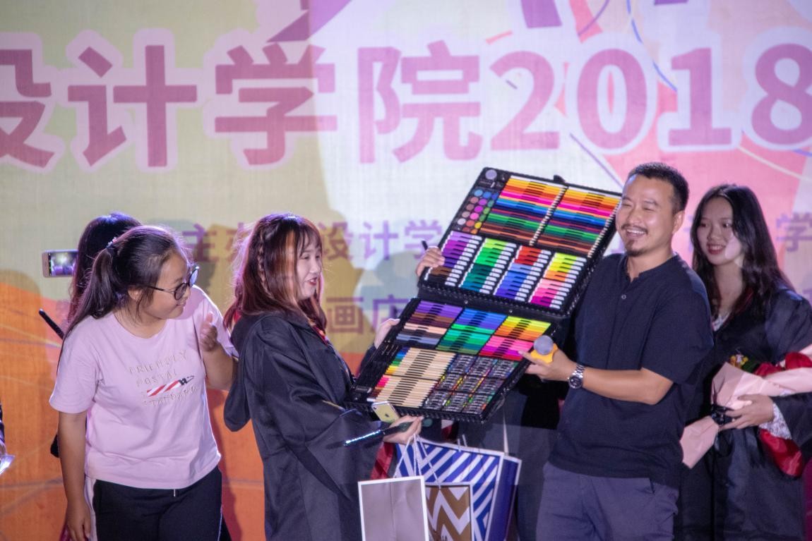 为让广大师生积极互动,晚会还加入了激动人心的抽奖环节。由设计学院常务副院长李林平、设计学院副院长庞定坤作为抽奖人,又引起一片欢呼。奖励丰厚让中奖的幸运儿兴奋不已。