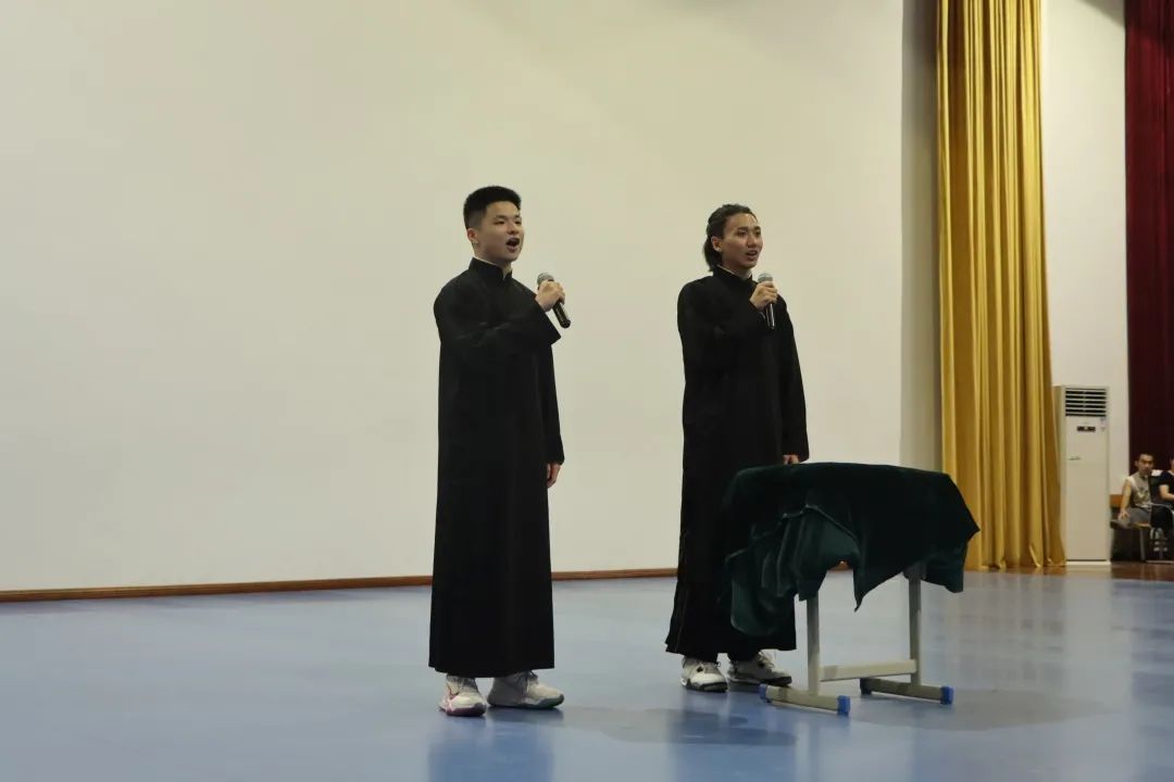 相声,一种民间说唱曲艺。主要采用口头方式表演。是扎根于民间、源于生活、又深受群众欢迎的曲艺表演艺术形式。请欣赏来自摄影2002、土木2001的相声表演《说学逗唱》。