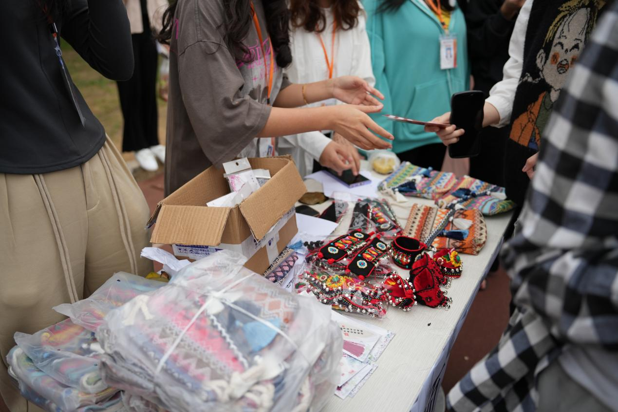 当天,学院师生身着各民族服饰,佩戴精美的配饰,通过民族舞蹈、民族歌曲、民族服装走秀等节目让在场师生“沉浸式”感受到壮乡儿女的独特与风情。此外,还举办了民族文化体验活动,学院师生参加了民族体育竞技、民族美食体验、民族手工艺品展示等活动。现场参与抛绣球、竹竿舞、背篓绣球、溜铁环旱地龙舟、手工绣球制作等民族活动,品尝了具有壮乡特色的民族美食,五色糯米饭、艾叶糍粑、彩蛋等,欣赏到了琳琅满目的民族手工艺品,尽显壮家儿女心灵手巧和热情好客,展现了八桂人民的幸福生活,给现场的师生带来了一场视听盛宴。