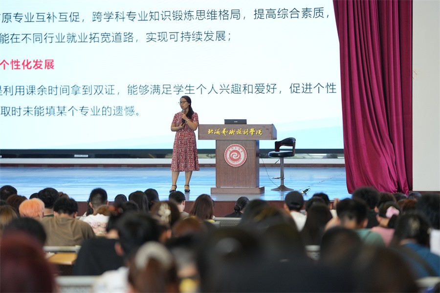 会上,熊秀峰院长紧跟当前就业形势,为现场学子深度剖析了辅修学位的潜在优势与广阔前景。她鼓励广大学子充分利用大学四年的宝贵时光,通过多元化学习与全方位能力提升,积极应对日益复杂的就业挑战,为步入社会做好充分准备。熊秀峰院长的讲话,不仅为学子指明了成长方向,也进一步激发了大家追求卓越、勇于探索的热情与动力。