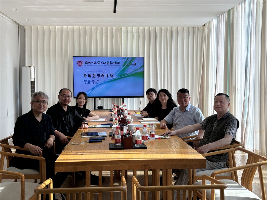 在福州大学厦门工艺美术学院、厦门理工学院设计艺术学院调研中,双方围绕环境设计专业的学科建设、课程改革及校企合作模式,对标头部院校经验,为优化人才培养方案、应对行业变革汲取智慧。调研团队实地走访两校导师工作室、专业实验室,并与校方开展座谈,重点探讨“行业变革下设计教育的破局路径”。调研团队表示将借鉴兄弟院校经验,加强校际合作,建立学术资源共享机制,推动师生交流互访,提升专业建设的开放性;强化校企融合,以“环境设计+新材料/人工智能”交叉融合为突破口,构建“理论教学—技术赋能—实践落地”全链条培养体系,重点对接数字技术、可持续设计等行业趋势。