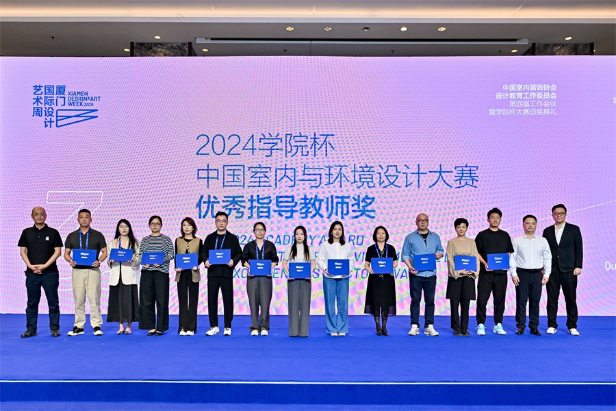 近日,中国室内装饰协会设计教育工作委员会第四届年会暨“学院杯”颁奖典礼在厦门举行。我校建筑与环境艺术学院一行与清华大学等高校代表共同探讨了关注在传统与现代碰撞的背景下环境设计专业的转型路径,讨论在数字化背景下高校课程改革与实践创新的重要性,聚焦环艺专业建设的区域特色以及产教融合模式的探索三大议题。会议期间,行业专家阐述了“科技赋能设计、文化厚植内涵” 的发展方向,为建筑与环境艺术学院“数字技术+传统设计”课程体系优化提供了理论参考。