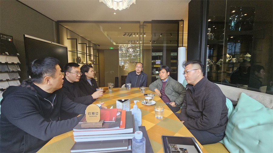 在克拉斯家居馆,走访团队在该馆营销总监黄禹钰女士的陪同下考察核心展区,直观感受国际顶级家居产品的陈列布局,详细了解空间设计的创意逻辑,以及当下高端家居服务领域的专业实力与行业积淀。考察结束后,走访团队与该馆董事长王大为围绕校企合作深入磋商。邱杰副校长从学校人才培养战略出发,提出希望依托行业资源,在学生实践培养、师资队伍建设等方面开展深度合作,让学生在真实商业场景中锤炼设计能力。王大为董事长对合作提议表示积极响应,他强调,克拉斯家居馆始终关注行业人才培养,愿为建筑与环境艺术学院提供优质实践平台,安排企业资深设计师担任学生实践导师,分享商业空间设计全流程经验,激励学生在环境设计领域深耕创新。