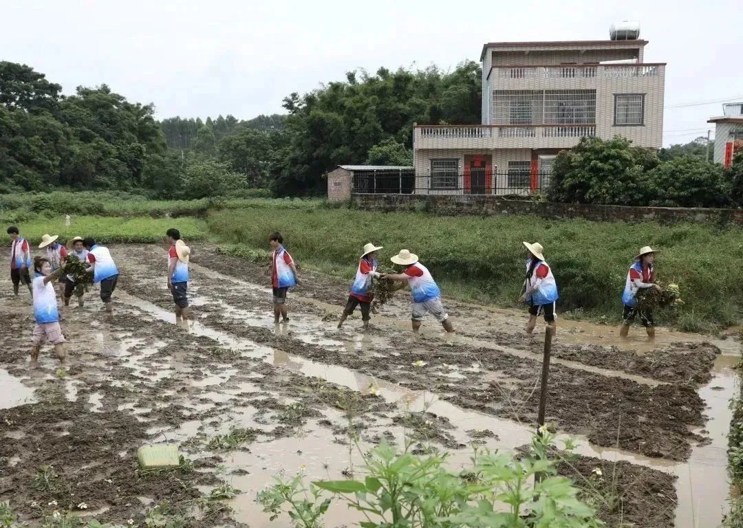 志愿者们分为两队,一队开展了助农采摘打包荔枝,另一队走到田地采摘花生,从源头了解花生的生长,亲身体会当地农民劳作的艰辛。