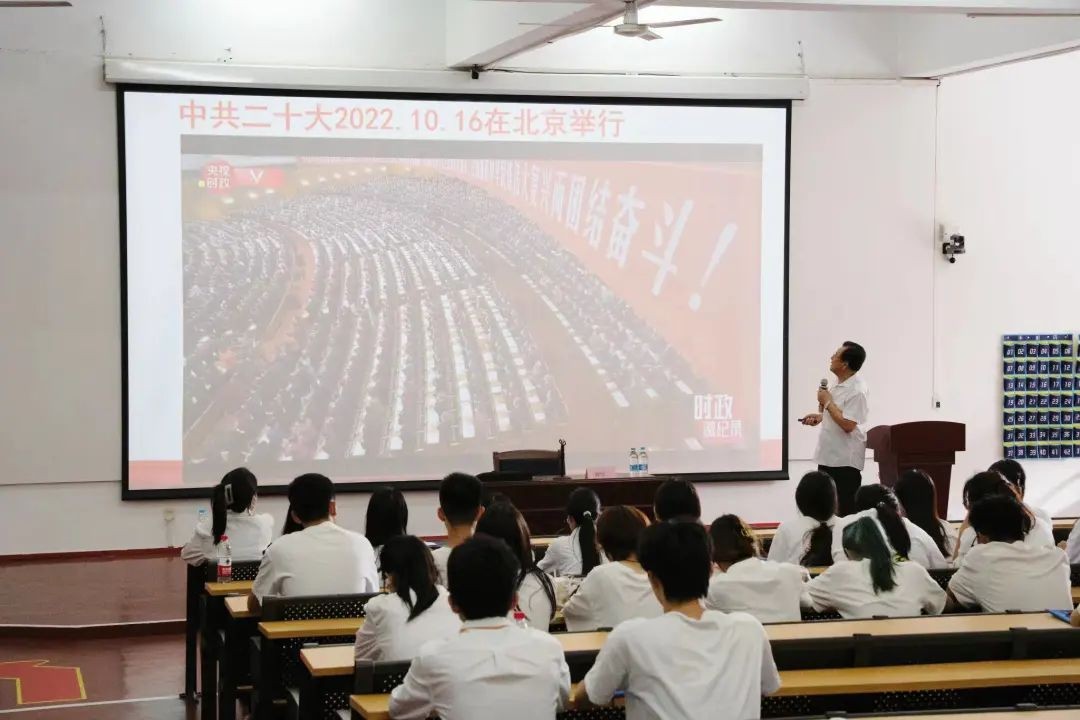 在开班培训中,我校马克思主义学院副教授刘兴仁老师为青马工程培训班学员带来了《二十大报告主要内容解读》的专题内容。他指出,我们要高举中国特色社会主义伟大旗帜,全面贯彻新时代中国特色社会主义思想,同时强调作为新时代大学生干部,应具备自信自强、守正创新、踔厉奋发,勇毅前行的勇气。